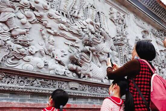 2月9日上午,砖雕大师何世良新作、大型砖雕艺术影壁《古韵薪火·盛世腾芳》在广州沙湾古镇揭幕。