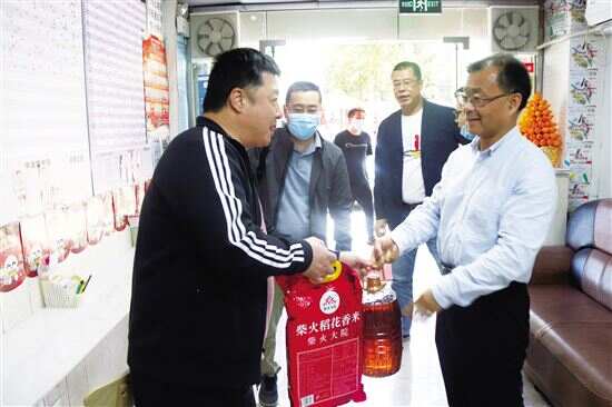 ■广东省体育局二级巡视员王卫东(右一)慰问实体店业主。