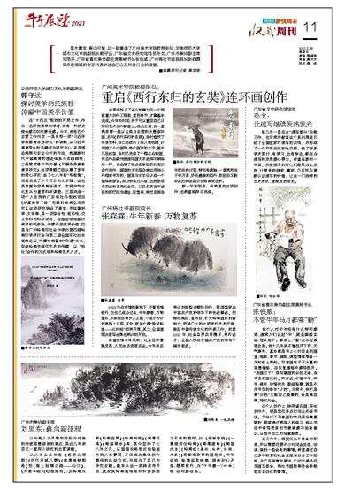 近两年投入了不少的精力在一个国家重大创作工程里,直到春节,才算基本完成。今年的时间,终于可以重回自己日常的艺术创作轨道上。在此之前,我一直构思着一组以玄奘为主题的水墨连环画,名叫《西行东归的玄奘》,当时查找了很多资料,自己也进行了深入的梳理,计划画三十个画面,每个画面的文字,基本已经成型,当时已完成了十幅左右的画,而且作品跟传统连环画文字选择印刷体不一样,我选择了有点类似册页的形式进行创作,画面的文字是在旁边用细小行楷来书写的,画面与文字设计成一个整体的版面。因为我去过印度,包括参观在那边的玄奘纪念馆,以及玄奘当年读经的那烂陀寺遗址、经堂等,我对玄奘当年取经的过程,特别有感触,一直想把他千辛万苦,历经磨难的西行,取经后又毅然东归的这段历史给表现出来。