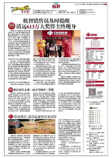 新快报讯 记者陆妍思 通讯员谭木娇报道 双色球第21013期开奖中,阳江市阳春市城东大道317号44140212投注站中出2注二等奖,单注奖金9.5万元,后证实为一对老年夫妻所中。近日,44140212投注站业主带着80岁的中奖者林伯(化名)前来福彩中心领奖。