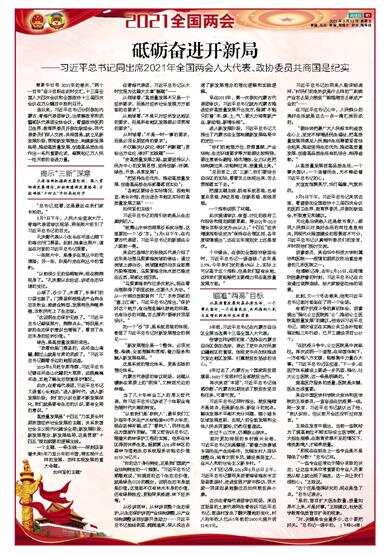 连日来,习近平总书记分别参加内蒙古、青海代表团审议,出席解放军和武警部队代表团全体会议,看望政协医药卫生界、教育界委员并参加联组会,同代表委员们深入交流、共商国是,就立足新发展阶段、贯彻新发展理念、构建新发展格局,推动高质量发展、创造高品质生活作出一系列重要论述,凝聚起亿万人民一往无前的奋进力量。
