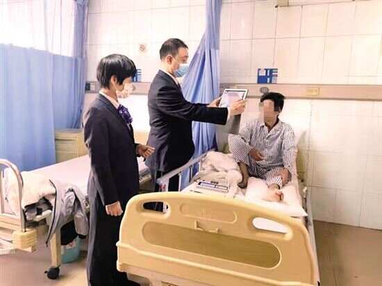 网点大堂经理了解到情况后,急客户所急,立即将相关情况汇报给网点负责人。网点负责人本着“以客户为中心”的工作要求,立刻启动应急预案,特事特办,迅速安排两位员工前往医院,按照业务规定落实好身份核查后为蓝先生妥善办理好银行卡激活业务。蓝先生在业务完成后对网点工作人员竖起了大拇指。