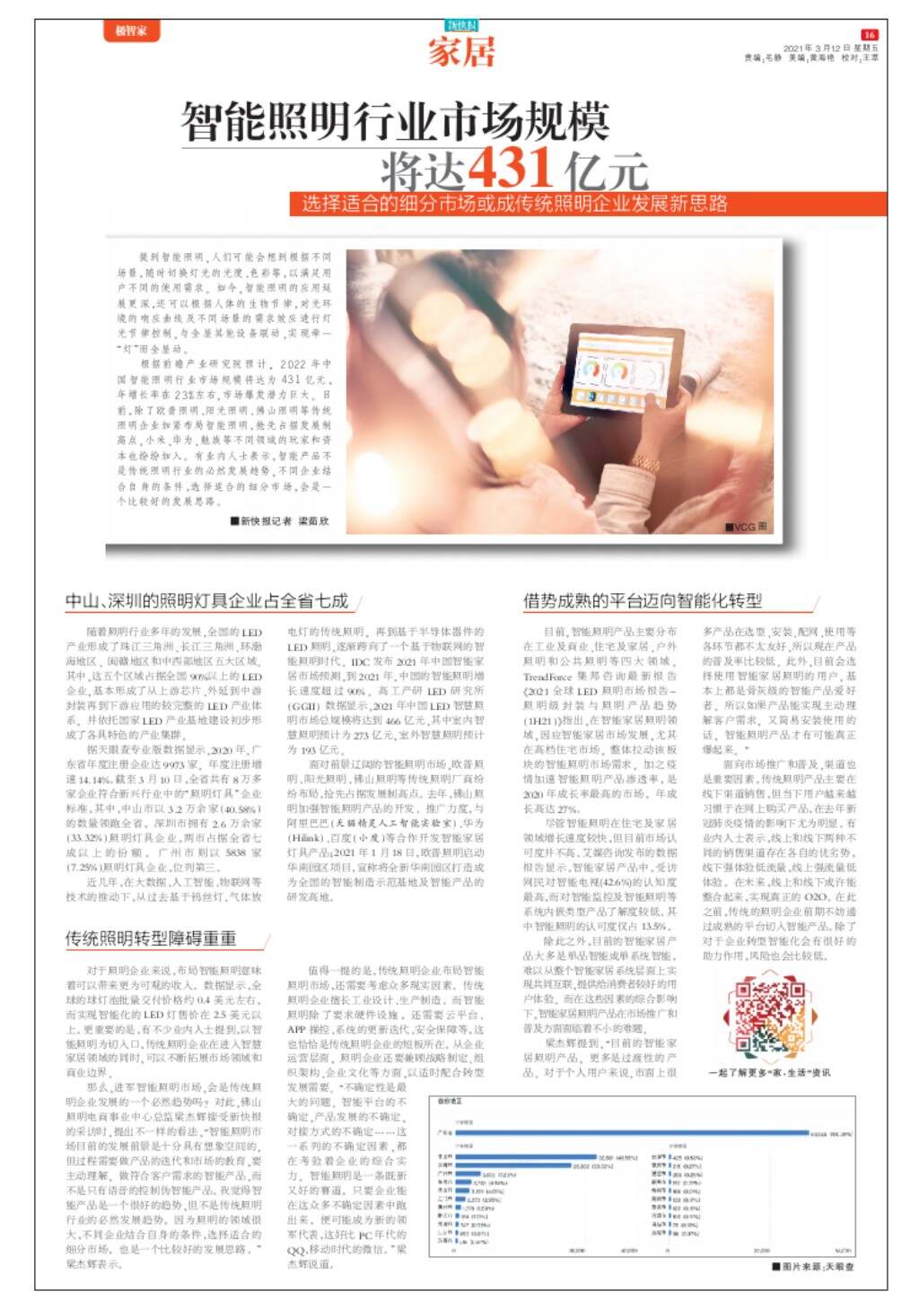 智能照明行业市场规模将达431亿元