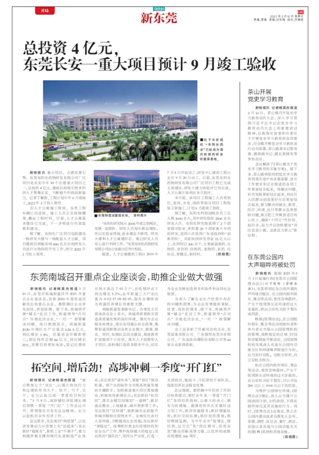 总投资4亿元,东莞长安一重大项目预计9月竣工验收