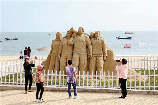 “才半年没来,这个地方就打造得这么漂亮,周末要带孩子来逛逛。”一位汕尾游客在十二岗沙雕公园海滩游玩时不由得发出赞叹。1927年,沙滩公园所在地是彭湃等同志领导农会会员攻打碣石城的集结地,当年约有6000人参与。此处的红色遗址景点正在加紧打造中,海边的沙滩则已经热闹非常,有各种人物沙雕,沙滩排球场、足球场等,不时有游客散步、观赏、海钓。