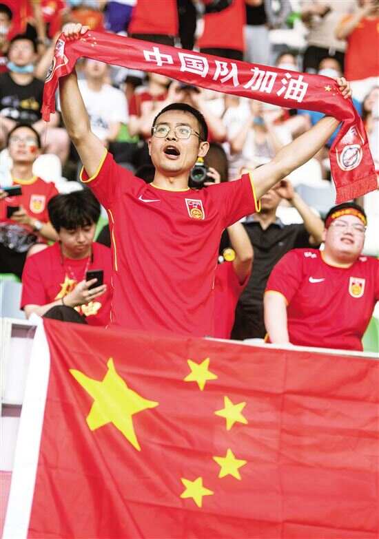 ■5月30日,球迷在比赛前为中国队加油。新华社发