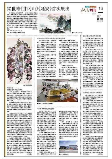 在日前举办的“红色礼赞——东莞·大岭山庆祝建党百年名家邀请展”中,首次展出了梁世雄创作于1977年的《井冈山》《延安》两件红色主题大作以及同期的写生手稿系列;李劲堃的《雪山翻越征程远》,是以山水长卷的传统方式表现红军行军的社会现实主义题材的佳作;同时特别展出的还有陈金章与李劲堃合作的巨幅丈二山水作。林顺文则领衔红色礼赞——大岭山红色革命遗址采风之行,一众艺术家书写时光洗礼中越发闪耀的大岭山红,创作出一批展现大岭山抗日根据地遗址遗韵的艺术精品。(梁志钦)