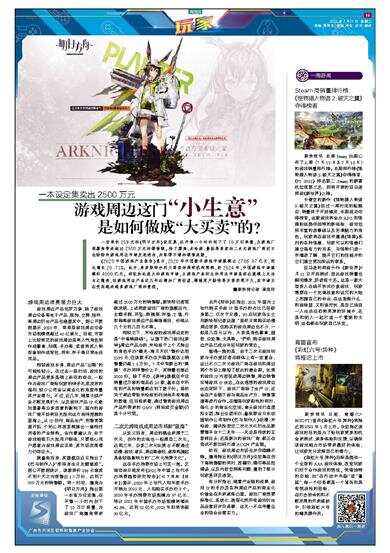 一份单价259元的《明日方舟》设定集,在开售一小时内创下了10万订单量,为游戏厂商鹰角带来超过2500万元的销售额。除了鹰角,米哈游、叠纸等多家的二次元游戏厂商近日也纷纷向游戏周边市场发起进击,并取得不错的销售成绩。