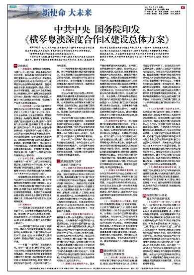 《横琴粤澳深度合作区建设总体方案》全文如下。