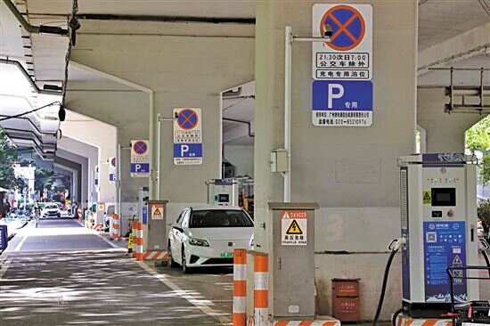 ■广州立交桥下的充电站停车位。