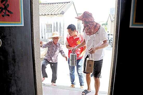临近中午12点,汕尾市城区马宫街道金町村长者饭堂里,陆续有老人前来领取午餐。工作人员一边招呼着前来领餐的老人,一边忙着打包。一份份热气腾腾的午餐,将被送往金町村10多户行动不便的孤寡老人家中。
