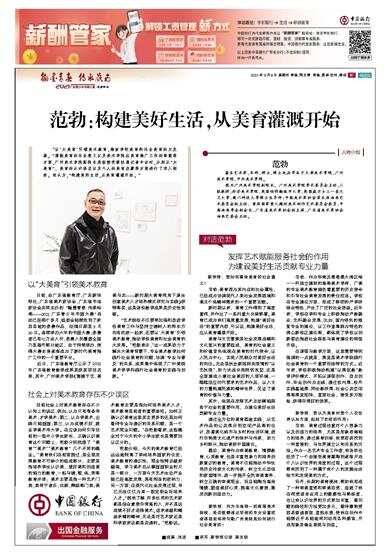 “以‘大美育’引领美术教育,推动学校美育和社会美育的大发展。”围绕美育的社会意义以及美术学院在美育推广工作的职能等方面,广州美术学院副院长范勃接受新快报记者专访时,分别从“大美育”、美育的认识误区以及个人的美育启蒙等方面进行了深入剖析。他认为,“构建美好生活,从美育灌溉开始。”