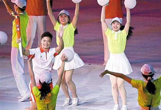 新快报讯 记者高京报道 全运会开幕式,来自广东的田径选手苏炳添作为第一棒火炬手进入现场。
