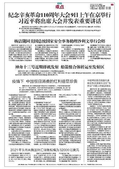 据新华社电 纪念辛亥革命110周年大会将于10月9日上午10时在北京人民大会堂隆重举行。中共中央总书记、国家主席、中央军委主席习近平将出席大会并发表重要讲话。