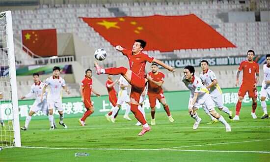 ■10月7日,中国队与越南队的比赛中,球员武磊(中)表现出色。 新华社图