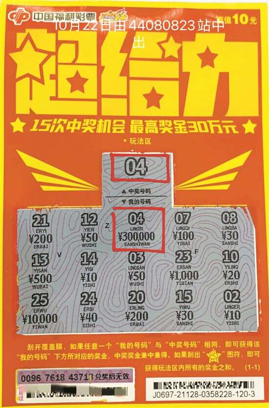 “超给力”自去年上市以来,得到了广大彩民的喜爱和认可,一度“卖断市”,直到今年10月中下旬才重新上市。没想到惠州刚在站点铺开“超给力”票,10月22日,彩民李先生(化名)就在大亚湾第44080823站中出了一等奖30万元。