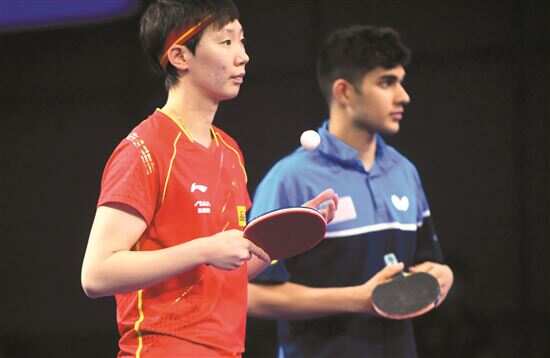 另一对中美混双组合是王曼昱与卡纳克,在与俄罗斯乒乓球协会组合西多连科/塔拉科娃的较量中,卡纳克/王曼昱在第二局与对手陷入缠斗,一路战至17平,最终两人以11∶6、19∶17、11∶7胜出。