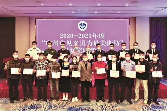 新快报讯 记者庄嘉宝报道 12月15日上午,广州市见义勇为基金会集中慰问奖励29名见义勇为好市民,并公布21名2020-2021年度“广州市见义勇为最美街坊”名单。他们之中有公交车司机、出租车司机、辅警、大学生……看似平凡,却在他人需要帮助时挺身而出,创造出不平凡事迹,为社会注入正能量,令“平安广州”的称号熠熠生辉。
