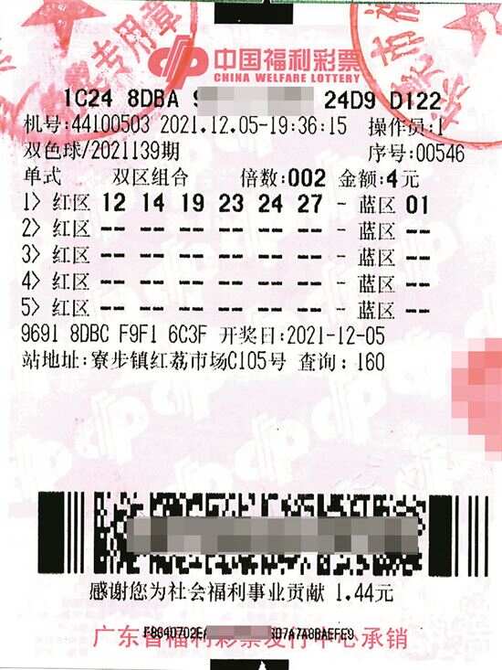 新快报讯 记者陆妍思 通讯员方志良报道 双色球第21139期开奖中,东莞寮步一张4元1注2倍投单式机选票,幸运揽获2注一等奖,单票总奖金1498万多元。在中奖一个星期后,大奖得主赖先生(化名)终于在儿女陪同下来到东莞市福彩中心兑奖。
