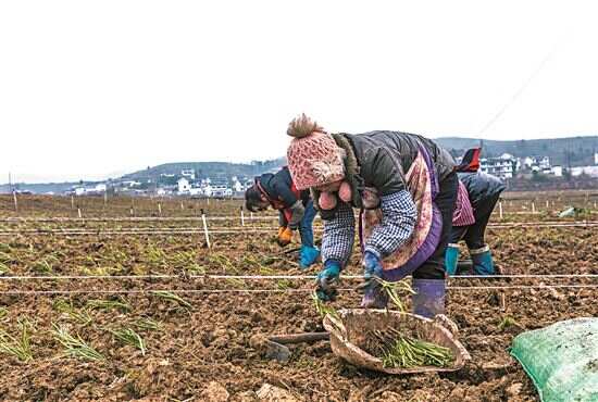 1月5日,村民在贵州省黔西市林泉镇栽种韭菜。