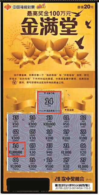 据中奖者介绍,他本人已经退休,平时在家带孙子,闲暇时也会去附近福利彩票销售场所购买彩票。1月4日上午,他像往常一样来到山场路44030121销售站购买“双色球”,随后手上还有几十元零钱,便选择了两张面值20元的“金满堂”刮刮乐彩票。谁料他随手一刮,其中一张就中得大奖100万元。中得大奖后,这位幸运彩民兴奋异常,甚至不敢相信自己的眼睛,经销售人员确认后,才满心欢喜地回家。