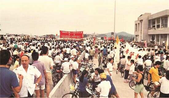 ■1989年8月1日,广佛高速公路试通车举办“万人单车行”活动。资料图