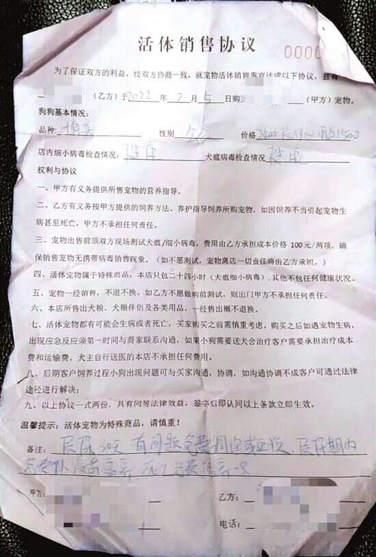 对此,宠物店回应,此前该消费者领回家的两只宠物已经死亡,可能是狗狗生活的环境有问题而导致病毒传染。此前经过协商,已与消费者达成一致意见,免费换狗并签署协议,“狗有问题可以在24小时内免费更换”。