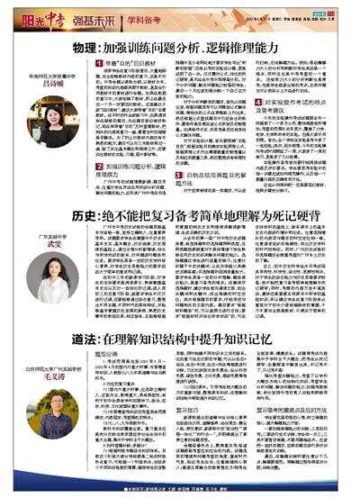 广州中考的试题情景新颖、题目灵活,注重对学生灵活运用知识分析问题、解决问题的能力,近年来广州中考在非选择题中至少有两处地方要求学生写出“判断的依据”,还有必考的实验设计题,更是说明了这一点。仅仅靠对公式、结论的死记硬背,是无法在中考中取得高分的。对于分析问题、解决问题能力较弱的学生,最后一个月应该加强训练一下自己这方面的能力。