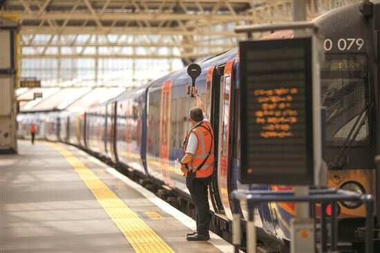 ■这是6月21日拍摄的英国伦敦滑铁卢车站一辆即将出发的列车。英国铁路当日遭遇罢工潮。当地媒体称,这是英国30年来最大规模的铁路罢工。 新华社发