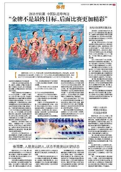 张雨霏赛后坦言,200米蝶泳半决赛距离接力决赛时间太短,可能对发挥产生了影响。她说: “这次世锦赛,不管能不能拿名次,每一枪都会全力游。虽然我们这个阵容基本是接近奥运会的阵容,但每个人的状态都不是奥运会的状态。赛前外界可能认为我们有实力冲金或拿奖牌,但对最近一段时间的训练状况,大家心里都有底。”