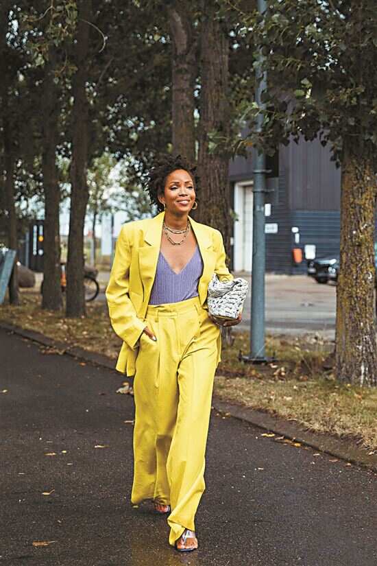 ▶宽阔的西装套装比修身款更受欢迎,也适合日常出行,超短内搭今年更流行。
