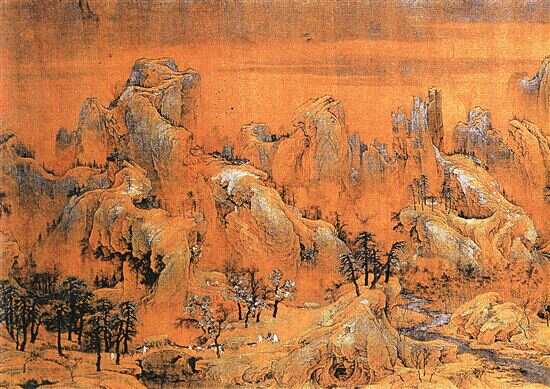 南宋以水墨刚劲的大斧劈皴山水为主,元代以抒情写意的文人画为主,南宋和元也有青绿山水,不但不居主流,且鲜有人专门从事青绿山水画的创作。明代沈周、文征明都是以水墨山水为主,也偶作青绿,但不是十分正规的大青绿。