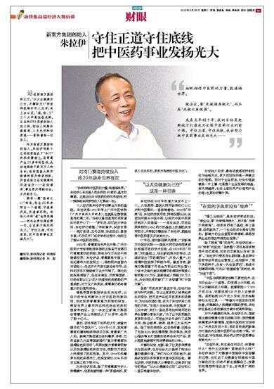 对于大健康的未来,朱拉伊认为,国家提出建设健康中国的战略目标,国民健康保健意识不断增强,发展中医药的空间很大。“未来五年到十年,我的目标是把新南方打造成为全国中医药行业的前十强。守住正道,守住底线,我会努力把中医药事业发扬光大……”