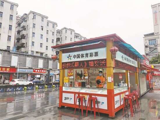 6月14日,羊城大雨,位于广州市白云区安华汇广场一家户外即开票销售实体形象店,红黄相间的色调搭配“中国体育彩票”标志格外引人注目,不时有撑着雨伞的群众前来购彩,该店代销者总是微笑着向购彩者讲述即开票游戏规则、体彩的公益性……这位代销者其实不简单,他叫桂叶飞。