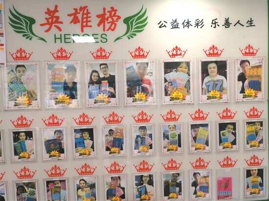 即开票实体店里,桂叶飞设置了“公益体彩 乐善人生”的《英雄榜》,征得购彩者同意后将即开票中奖500元以上的购彩者与中奖彩票合影上榜,每位进店的购彩者都会留意和关注。桂叶飞也会向大家分享中奖者的喜悦,以及解释“无论中奖与否都是在做公益”的理念,提倡大家理性购彩。
