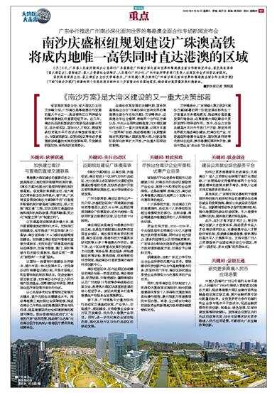 《南沙方案》是大湾区建设的又一重大决策部署