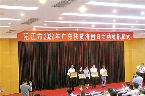 今年6月30日是第13个“广东扶贫济困日”。6月29日上午,阳江市委、市政府隆重举行阳江市2022年广东扶贫济困日活动募捐仪式。会上,一批企业和乡贤踊跃奉献爱心,截至目前,参与2022年广东扶贫济困日活动的认捐款额逾5000万元。会上还对4家企业单位授予2021年阳江市广东扶贫济困日活动“募捐之星”牌匾。