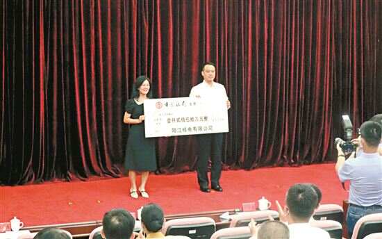 募捐仪式上,一批爱心企业和爱心乡贤作出表率,踊跃捐献爱心。其中中国能源建设集团投资有限公司南方分公司30万元、明阳集团阳江基地50万元、广东鸿兴实业集团50万元、东莞市兆和实业投资有限公司50万元、广东凌霄泵业股份有限公司100万元、阳江核电有限公司1250万元,王海波先生个人捐款100万元。
