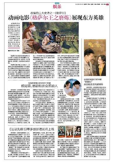由《格萨尔》史诗改编成的动画电影《格萨尔王之磨炼》将在2022年与观众见面。《格萨尔》是我国三大史诗之一,2009年被列入联合国教科文组织“人类非物质文化遗产名录”,是世界上最长的史诗,同时也是唯一的活史诗,由说唱艺人世代承袭。