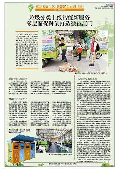️■江门市培育企业自主开发“环保骑士”上门回收服务平台以及“马将军”终端智能垃圾分类回收机。