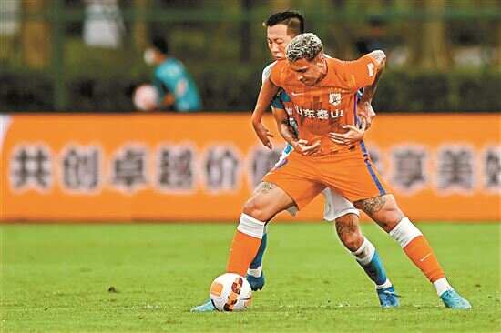 ■在双方首回合交锋中,广州城以一球小负山东泰山。 新华社发