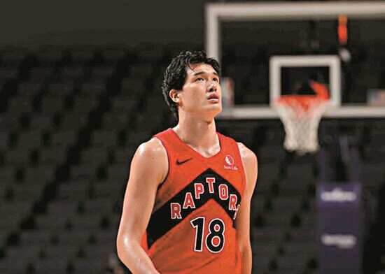 渡边雄太今年28岁,虽然在2018年参加NBA选秀时曾落选过,但随后他代表灰熊、猛龙征战NBA比赛。上赛季他代表猛龙队出战38场比赛,场均拿到4.3分和2.4个篮板。