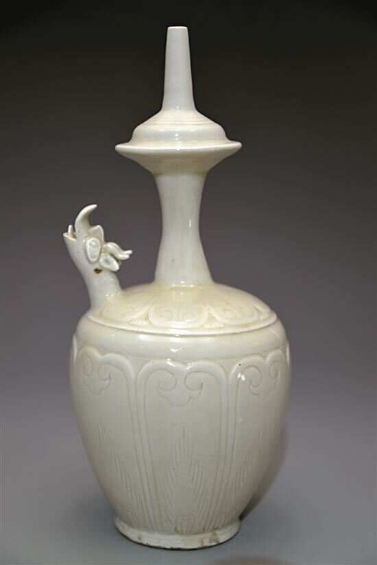 ■五代至北宋,定窑白釉刻莲纹龙首净瓶,河北定州静志寺塔基地宫出土