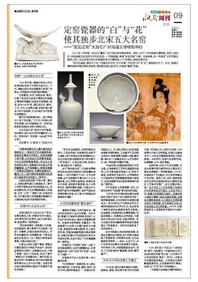 “定窑是我国历史上最为著名的白瓷窑场之一,窑址位于河北省曲阳县,因曲阳古属定州而得名。其烧造瓷器不晚于唐,北宋至金代达到繁荣昌盛,元代以后逐渐衰落停烧。在长达七百余年的历史中,定窑是中华大地上产品质量最高、生产规模最大、影响范围最广的精细白瓷窑场,在薄胎瓷器成形、覆烧工艺、以煤为燃料等瓷器制作和烧造方面具有开创性意义。”施梵说。