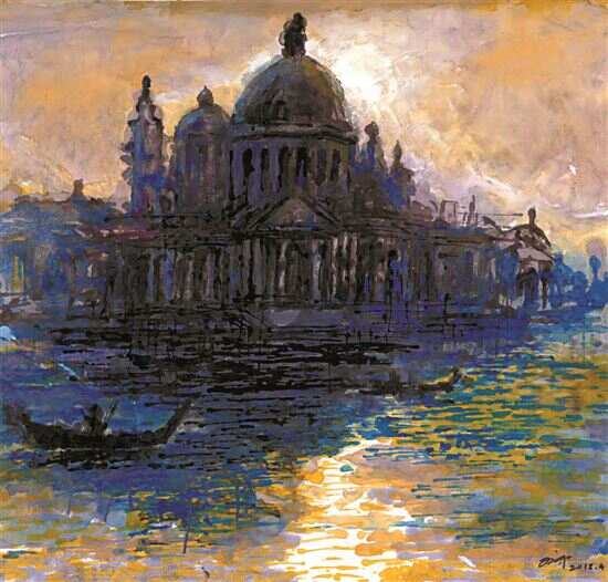 细看王立中的画,用“法无定法”来形容,较为贴切,而让观者更为惊叹的是,在他大胆放纵的用笔之下,色调上却被牢牢地把握住,既能放,亦能收,十分笃定的用色上,更显高级,在他的一批欧洲风景写生上,尤其如此。“要摆脱形的束缚,用色彩韵律说话。”