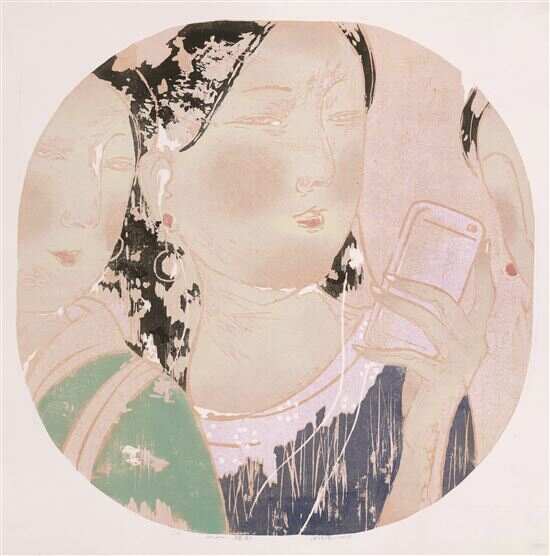 “如如”系列作品灵感来自平时积累的一些速写素材,从身边真实平凡的人与事中寻找自己,关照自我。“了了分明,如如不动”,人事变幻无穷,一切都在刹那间泯灭。无论是儿时的游戏、亲密的嬉语、脑海的幻影、花季的悸动……作品以木版画套色作为媒介,颜色的叠加在预设中偶遇不可操控,介入无意识的古壁画那斑驳的视觉效果,在现实当下中以游客的身份游览这似是而非之境,以不动之心遍观象之千变万化。