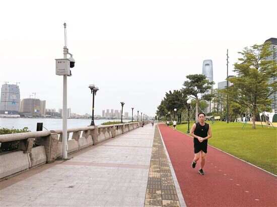■广州市海珠区阅江中路亲水公园的盲道设置在道路中间,宽为60厘米。