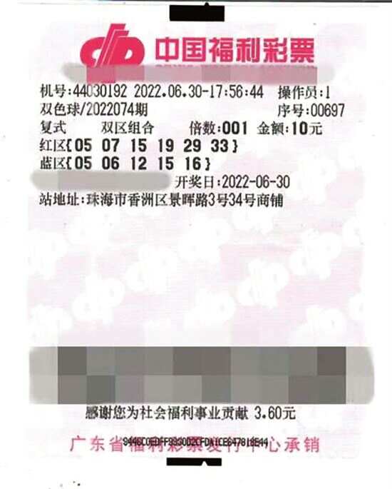 新快报讯 记者陆妍思 通讯员苏疆报道 6月30日,珠海市香洲区景晖路的44030192投注站中得双色球第22074期1注841万多元一等奖,由于中奖彩票为一张10元的“6+5”复式票,除中得1注一等奖外,还中出5注二等奖,合计奖金达919.48万元。7月1日上午,中奖彩民柳女士(化名)来到珠海市福彩中心兑奖。
