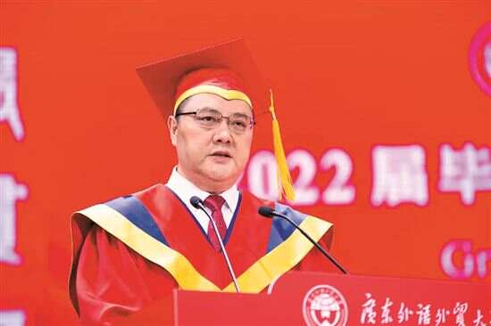 7115位毕业生身着新款毕业服,开启全新的人生旅程。校长石佑启在致辞中援引广外多位优秀教师、校友动人事迹,为毕业生上了最后一课。
