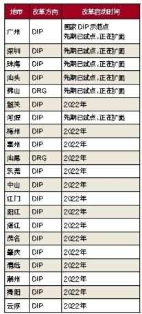 国家医保局于2021年底部署了《DRG/DIP支付方式改革三年行动计划》,到2024年底,全国所有统筹地区全部开展DRG/DIP支付方式改革工作,到2025年底,DRG/DIP支付方式覆盖所有符合条件的开展住院服务的医疗机构。广东在先期启动的试点城市不断巩固改革成果的基础上,其余市今年全部开展DIP支付方式改革,将提前两年实现全覆盖。